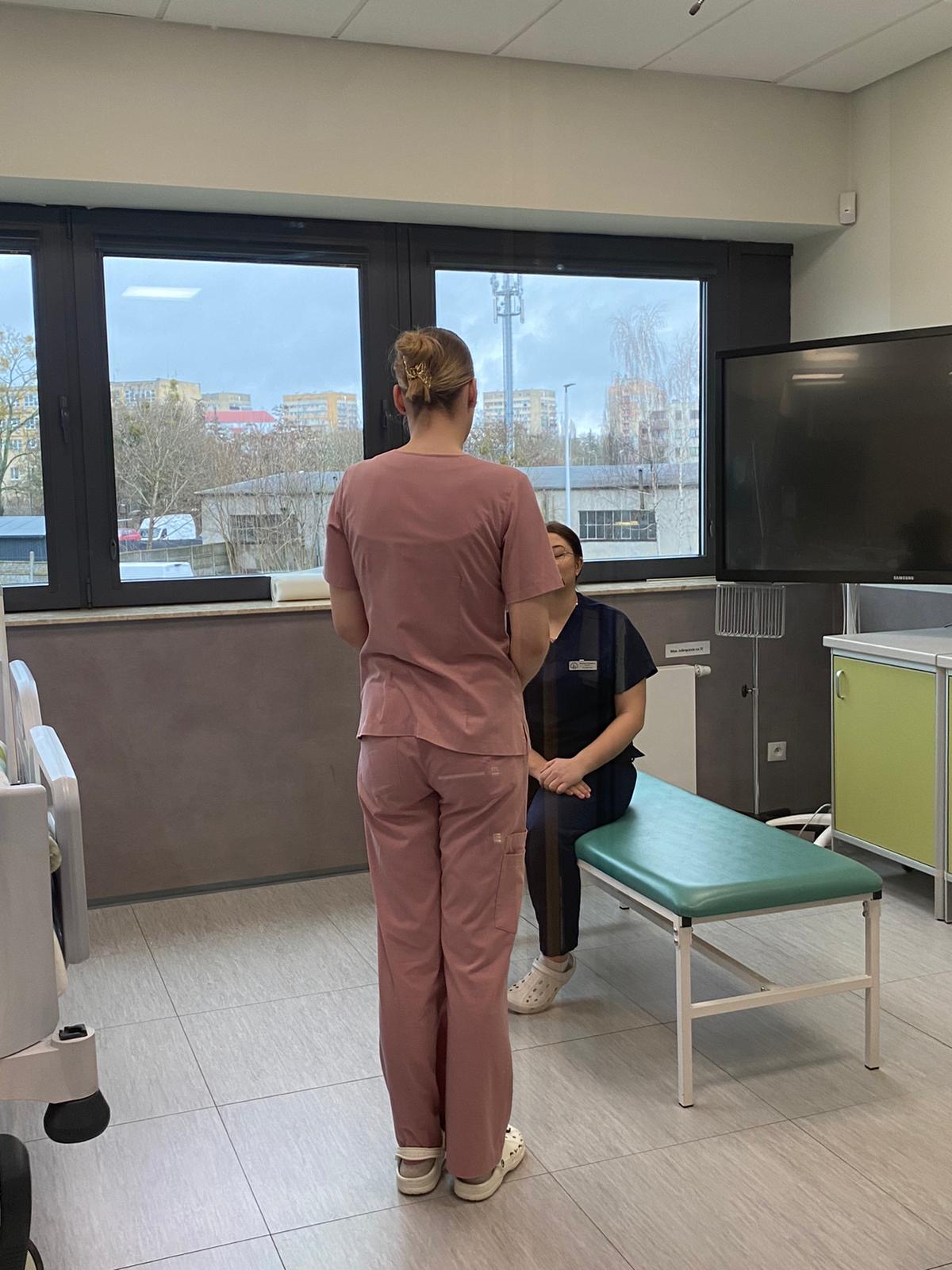 Studenci kierunku pielęgniarstwo realizowali zadania z zakresu badań fizykalnych na specjalnie przygotowanych, standaryzowanych stanowiskach egzaminacyjnych, prezentując wiedzę teoretyczną, umiejętności praktyczne i komunikacyjne, a także przestrzeganie zasad bezpieczeństwa pacjenta.