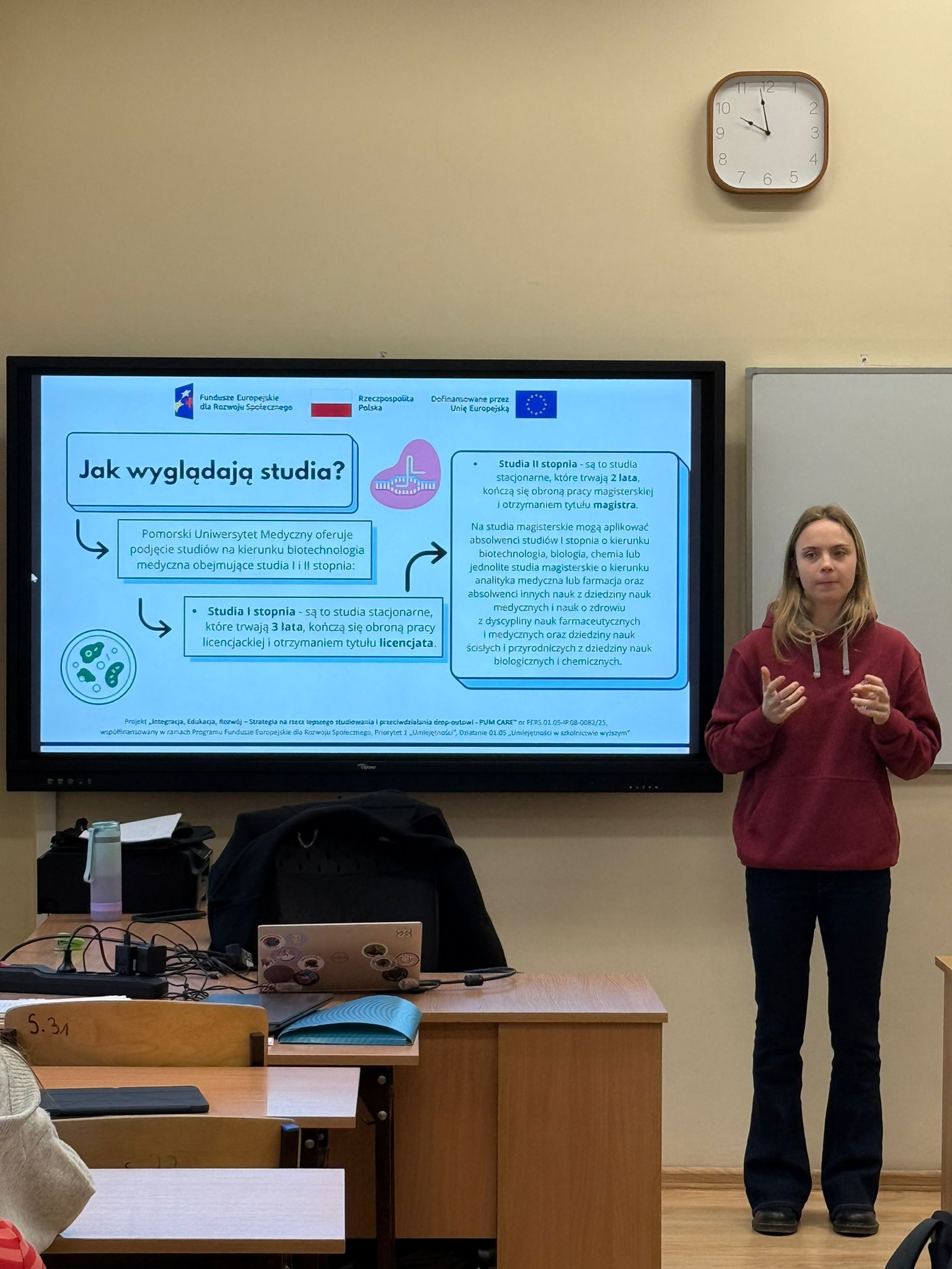 Studentki Wydziału Farmacji, Biotechnologii Medycznej i Medycyny Laboratoryjnej Pomorskiego Uniwersytetu Medycznego w Szczecinie przeprowadziły prelekcje promocyjne w I Liceum Ogólnokształcącym w Szczecinie. Spotkanie odbyło się 28 stycznia 2026 r. i było skierowane do uczniów i uczennic zainteresowanych studiami na kierunkach medycznych.