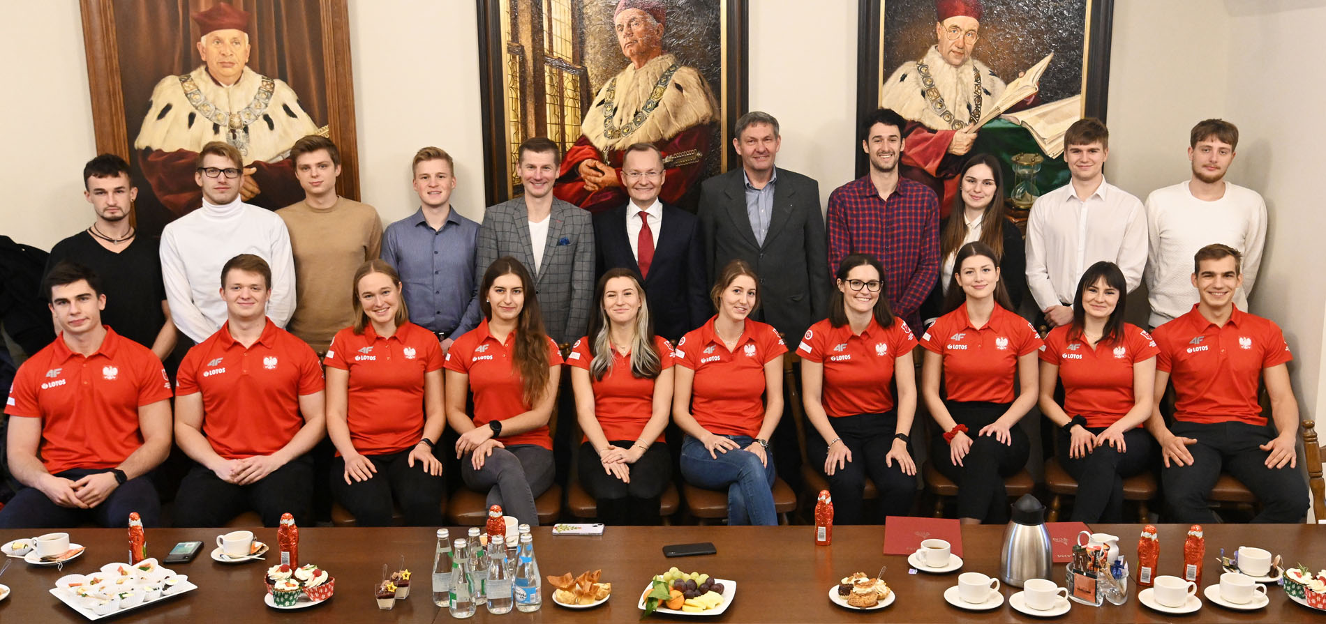 Grudniowe spotkanie Rektora PUM prof. Bogusława Machalińskiego z przedstawicielami studentów różnych sekcji sportowych było okazją do przekazania im gratulacji i słów uznania za godne reprezentowanie Uniwersytetu w licznych zawodach międzyuczelnianych.
