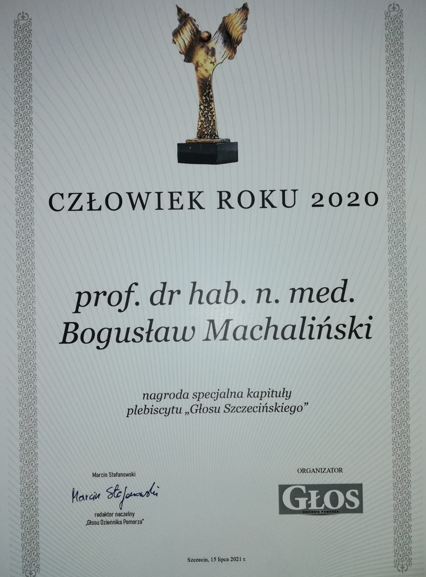 Redakcyjna Kapituła przyznała tytuł Człowieka Roku „Głosu Szczecińskiego" prof. Bogusławowi Machalińskiemu, rektorowi PUM. To wyróżnienie przyznawane jest osobom, które przyczyniają się do promocji i rozwoju regionu Pomorza Zachodniego oraz w minionym roku najbardziej zasłużyły się dla lokalnych społeczności.