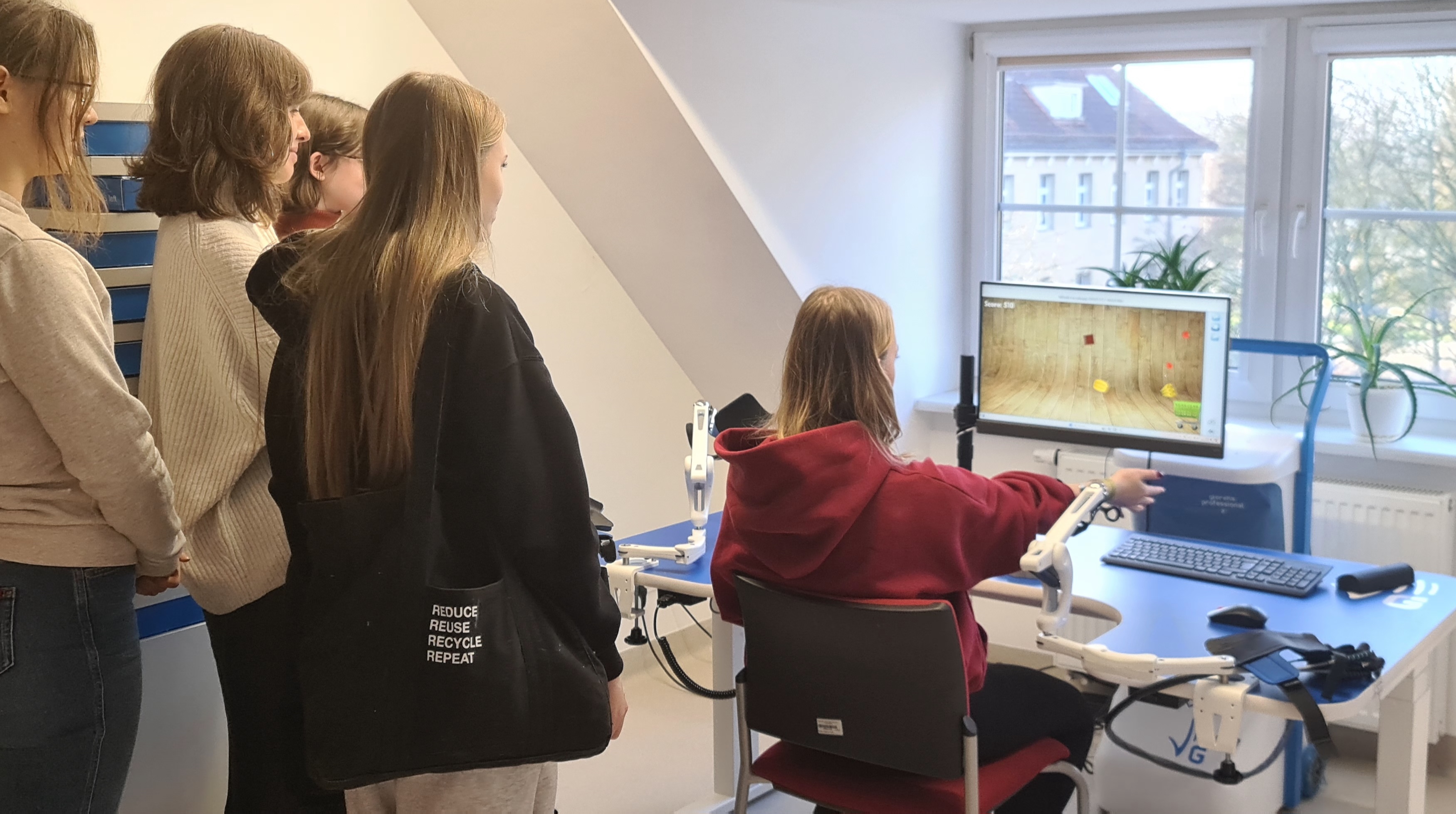 Młodzież uczestniczyła w sesji wykładowej, gdzie zaznajomiła się z historią i strukturą PUM oraz poznała zagadnienia związane z medycyną i fizjoterapią. Następnie wielu pozytywnych wrażeń dostarczyła część warsztatowa, gdzie Licealiści zapoznali się ze specjalistycznym sprzętem do diagnostyki i nowoczesnej fizjoterapii.