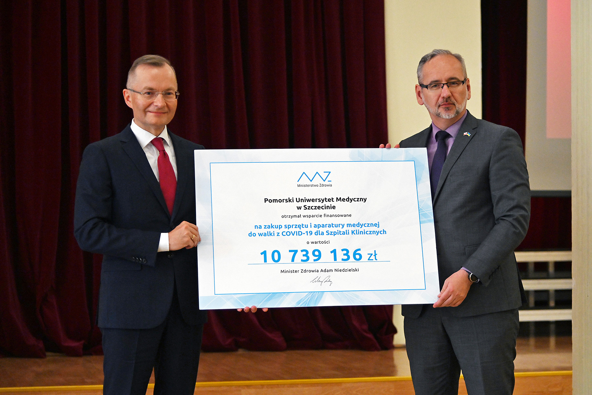 Otrzymana dotacja z Ministerstwa Zdrowia przeznaczona będzie na sfinansowanie zakupu robota neurochirurgicznego wraz z nawigacją i ramieniem z przeznaczeniem na Blok Operacyjny Kliniki Neurochirurgii i Neurochirurgii Dziecięcej, kierowanej przez prof. Leszka Sagana w Samodzielnym Publicznym Szpitalu Klinicznym nr 1 Pomorskiego Uniwersytetu Medycznego w Szczecinie (8 mln zł) oraz zakup aparatu RTG z ramieniem oraz sprzętu endoskopowego dla Kliniki Chirurgii Ogólnej, Naczyniowej i Angiologii w Samodzielnym Publicznym Szpitalu Klinicznym nr 2 Pomorskiego Uniwersytetu Medycznego w Szczecinie (2 739 136 zł).