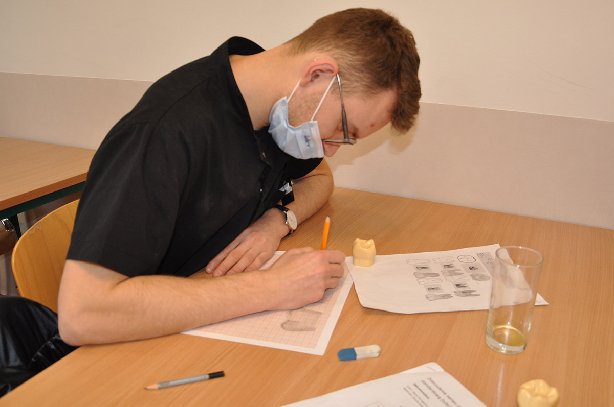 Studenci rywalizowali w kilku konkurencjach, m.in. opracowywali i wypełniali ubytki w zębach fantomowych, w celu odtworzenia brakującej ściany stosowali formówki częściowe (Contact Matrix; Danville). W warunkach symulacji zakładali koferdam, wykonywali znieczulenie przewodowe oraz rozpoznawali zęby fantomowe, a także rysowali na papierze milimetrowym korony zębów trzonowych. Podczas zawodów sprawdzono również ich wiedzę dotyczącą rentgenodiagnostyki stomatologicznej – test przygotowała prof. Ingrid Różyło-Kalinowska.