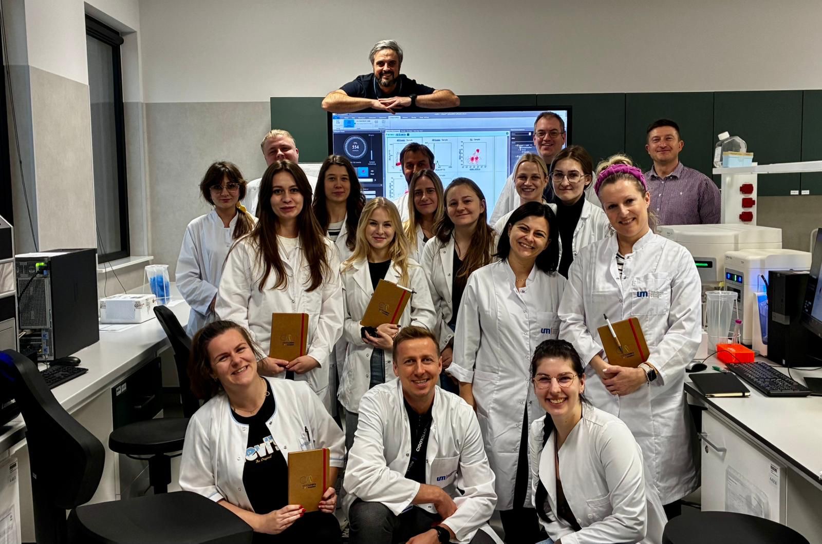 Podczas dwudniowych zajęć uczestnicy mieli okazję nie tylko pogłębić wiedzę teoretyczną, ale przede wszystkim zdobyć praktyczne doświadczenie w zakresie analizy komórek z wykorzystaniem cytometrii przepływowej – jednej z kluczowych metod nowoczesnych badań biomedycznych. Warsztaty prowadzone przez wybitnych specjalistów w tej dziedzinie pozwoliły naukowcom udoskonalić umiejętności analityczne oraz poszerzyć perspektywę zastosowania cytometrii w prowadzonych projektach badawczych.