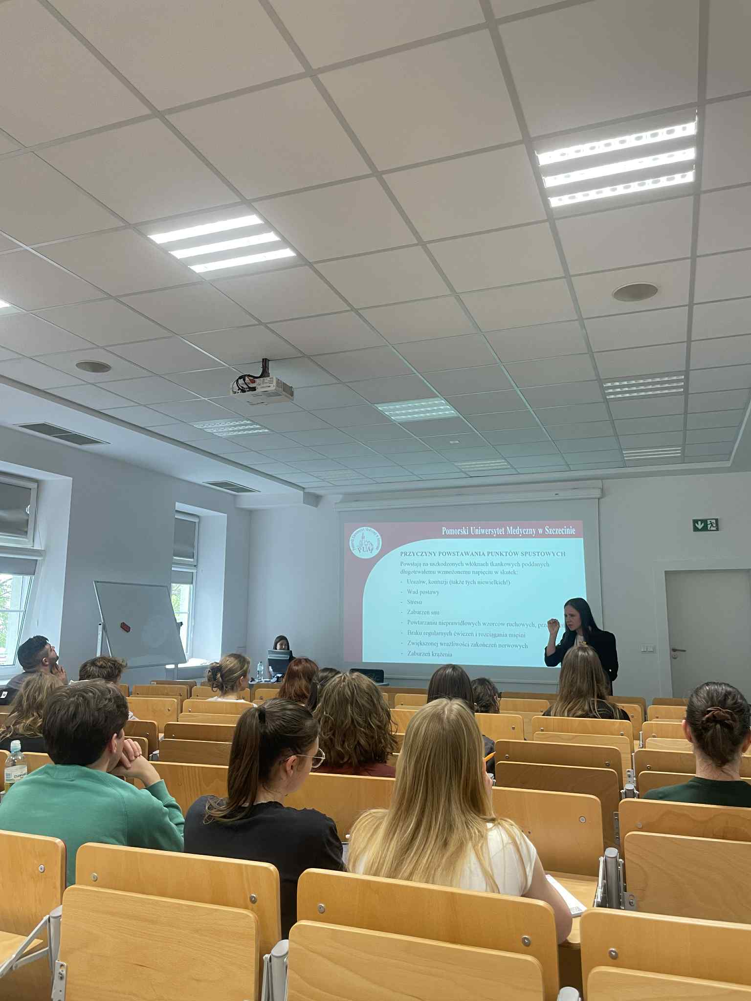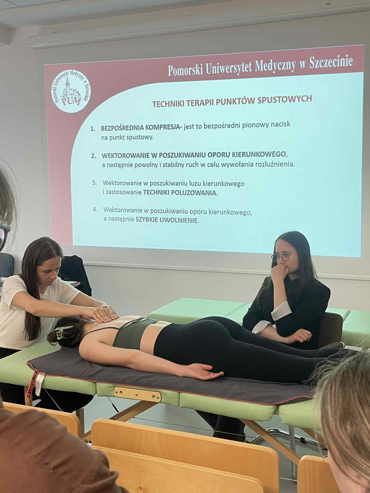 W dniu 27 maja 2025 r. w budynku MCD 2 odbyły się warsztaty z terapii punktów spustowych, prowadzone przez mgr Julitę Januszewską z Zakładu Rehabilitacji Medycznej i Fizjoterapii Klinicznej Pomorskiego Uniwersytetu Medycznego w Szczecinie.