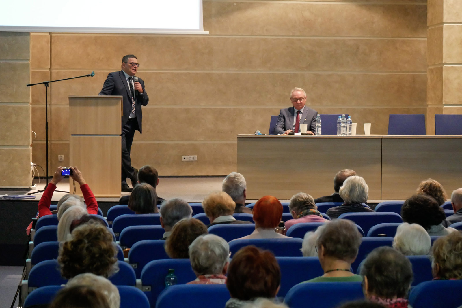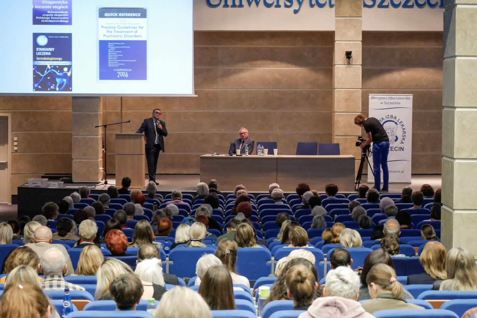 Następnym wykładowcą był prof. Jerzy Samochowiec, kierownik Katedry i Kliniki Psychiatrii PUM w Szczecinie, przewodniczący Komitetu Sterującego Psychiatrycznymi Towarzystwami Europejskiego Towarzystwa Psychiatrycznego (EPA) i past-prezes Polskiego Towarzystwa Psychiatrycznego Profesor Samochowiec omówił zaburzenia psychiczne w okresie starzenia. Istotnym problemem w tym okresie życia jest depresja, która nie dość, że jest czynnikiem ryzyka otępienia, to także może być prodromem, jak także psychologiczną reakcją na otępienie.