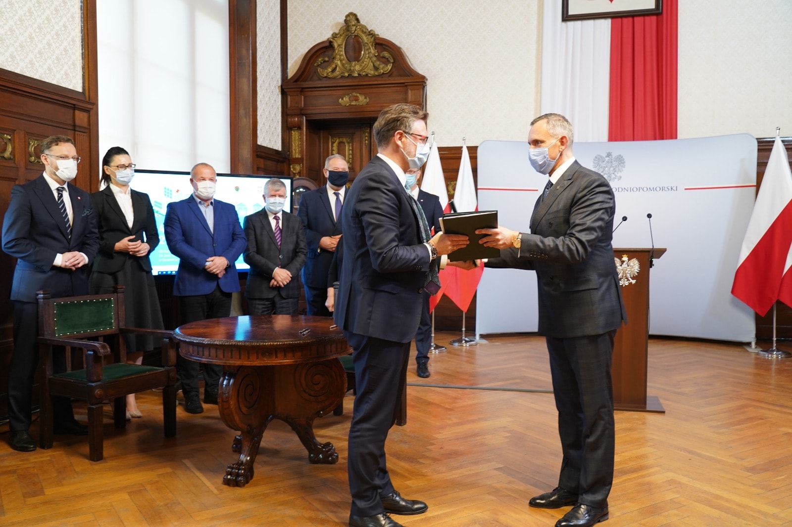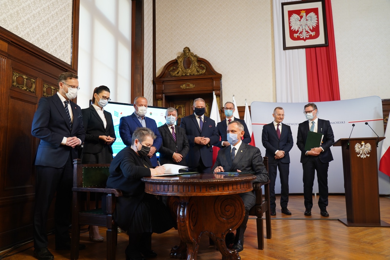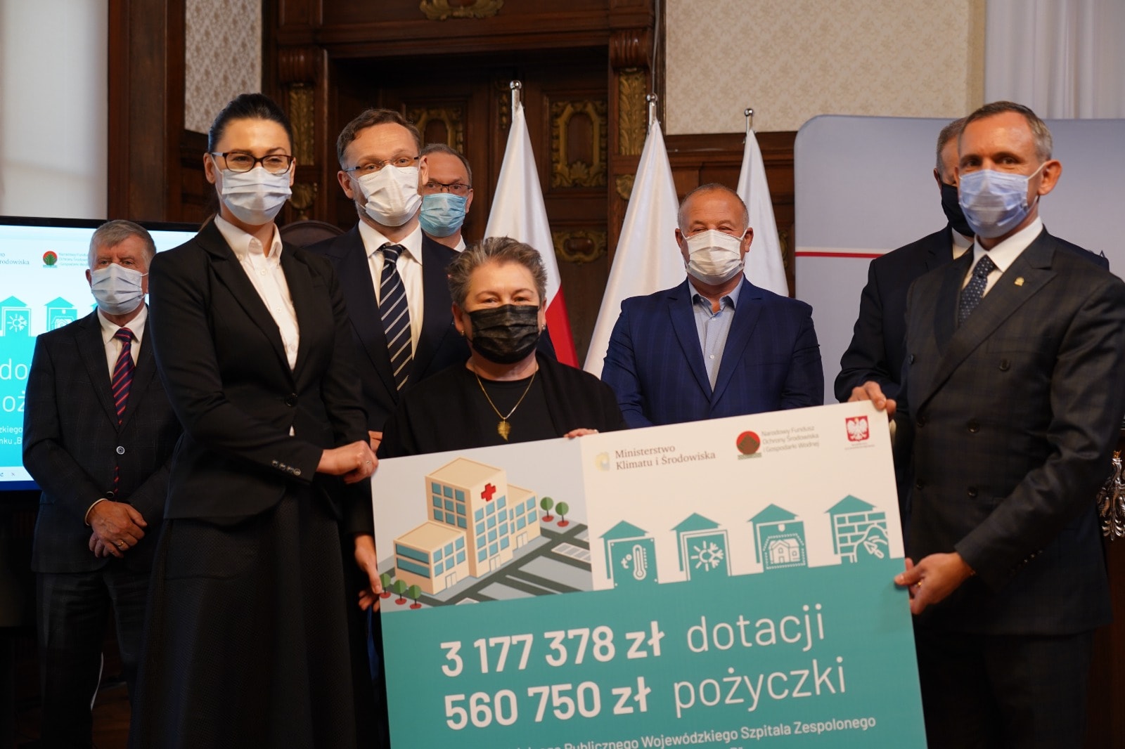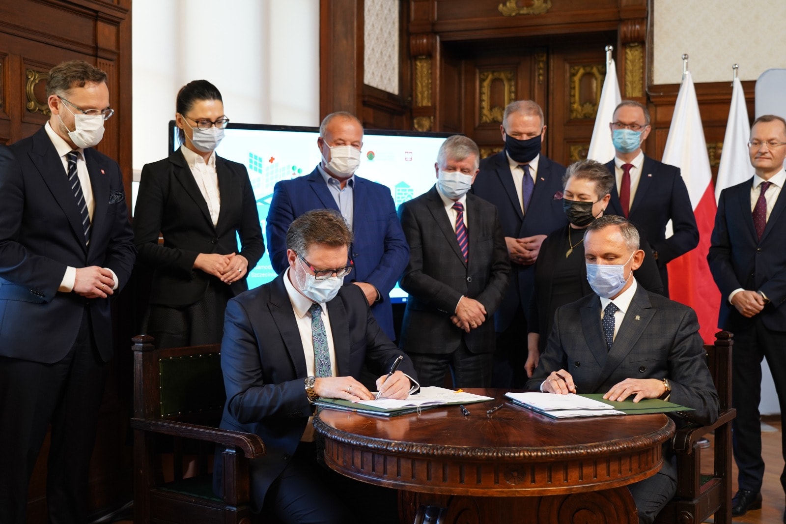 Dotację na termomodernizację w wysokości 6 mln złotych otrzymał także Samodzielny Publiczny Wojewódzki Szpital Zespolony w Szczecinie. Obie umowy zostały podpisane 20 grudnia 2021 r. w Zachodniopomorskim Urzędzie Wojewódzkim w Szczecinie. W uroczystości uczestniczyli wiceprezes NFOŚiGW Paweł Mirowski, wiceminister w Ministerstwie Klimatu i Środowiska Małgorzata Golińska, posłowie Leszek Dobrzyński, Michał Jach i Artur Szałabawka, wojewoda zachodniopomorski Zbigniew Bogucki i wicewojewoda Tomasz Wójcik, a także beneficjenci dofinansowania – dyrektor SPWSK Małgorzata Usielska i dyrektor SPSK-1 PUM Konrad Jarosz wraz z rektorem PUM prof. Bogusławem Machalińskim.