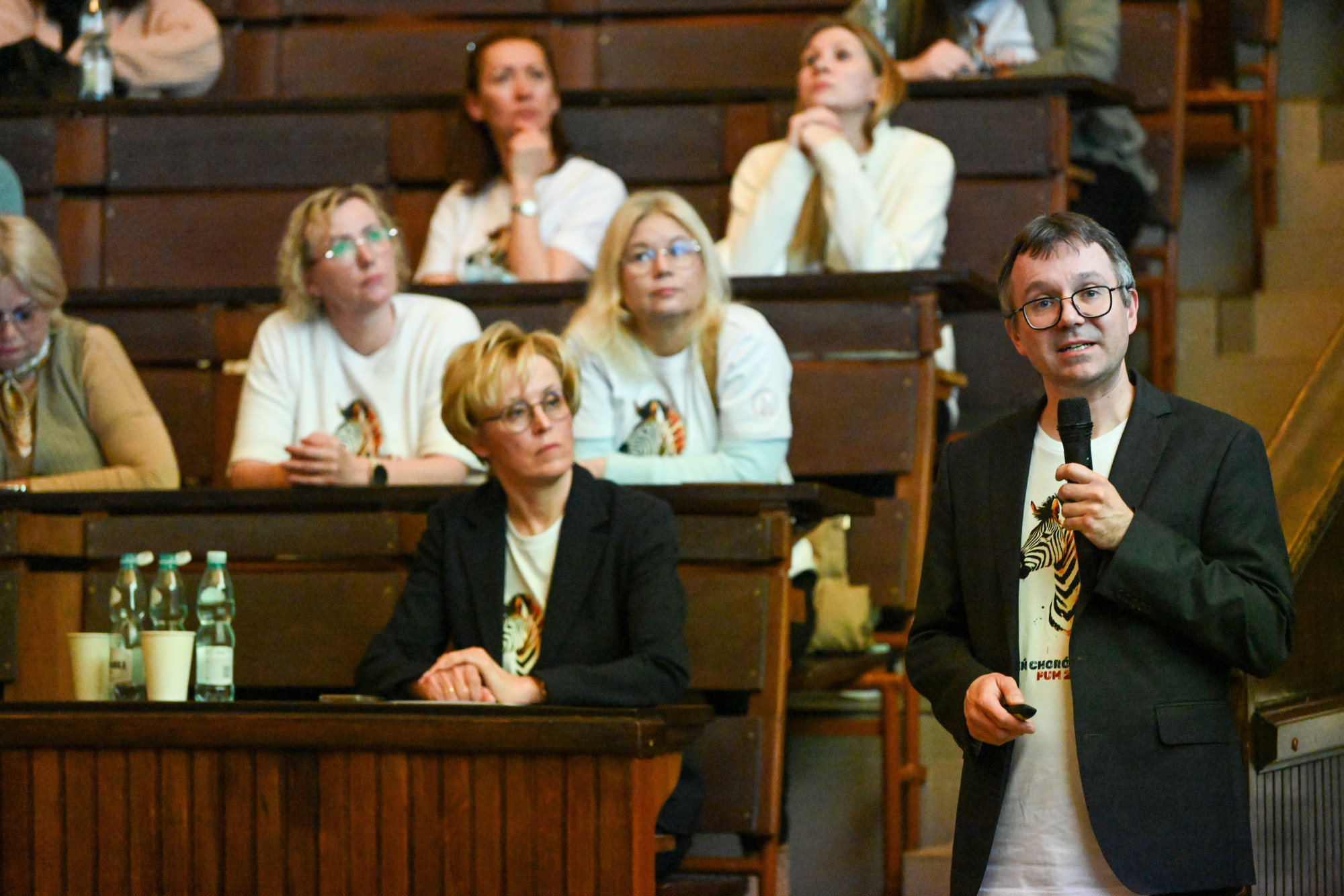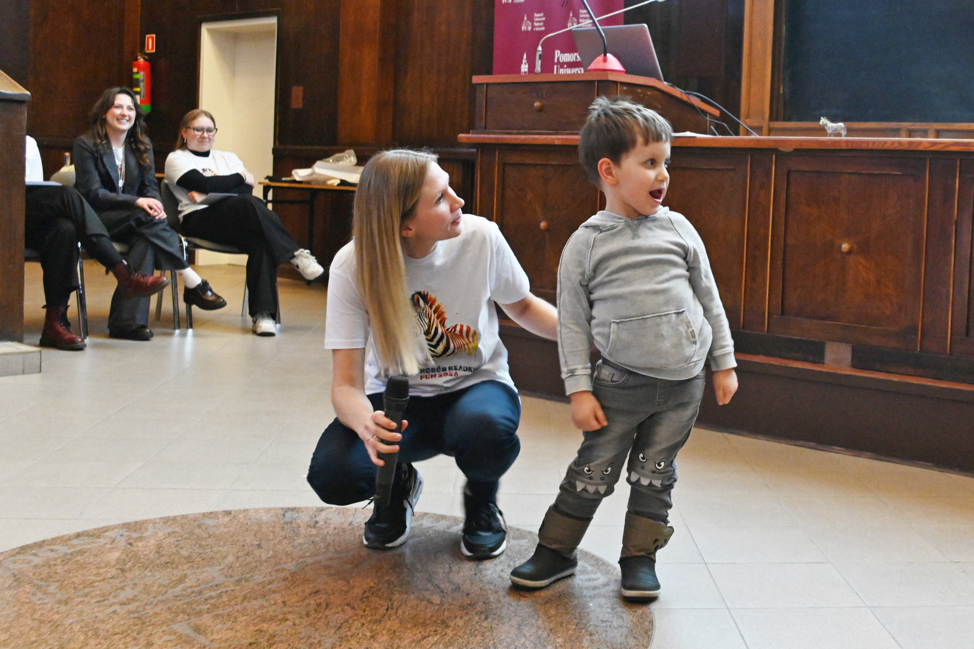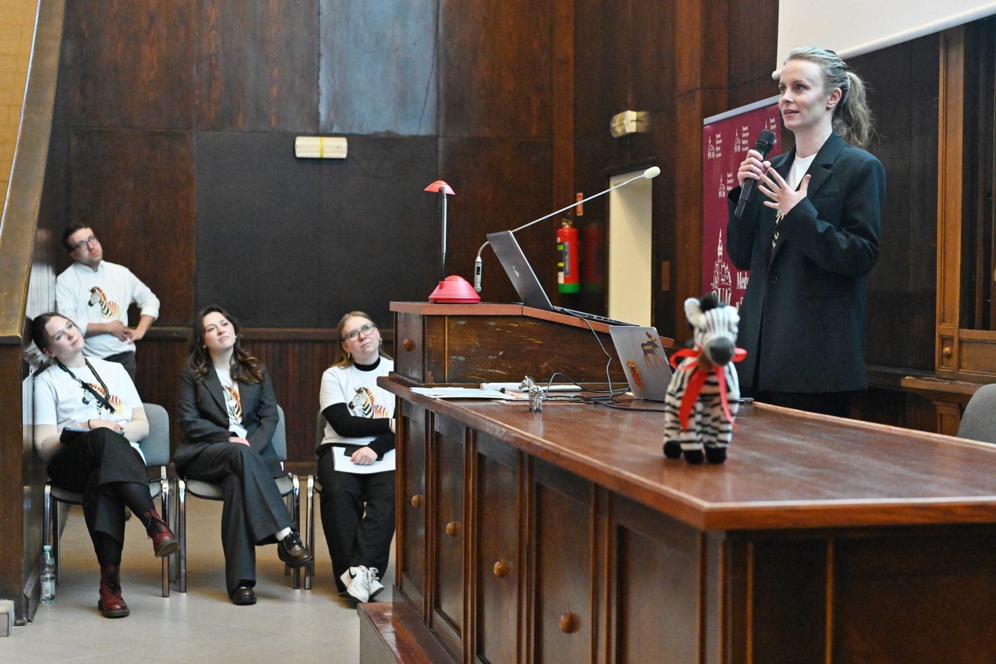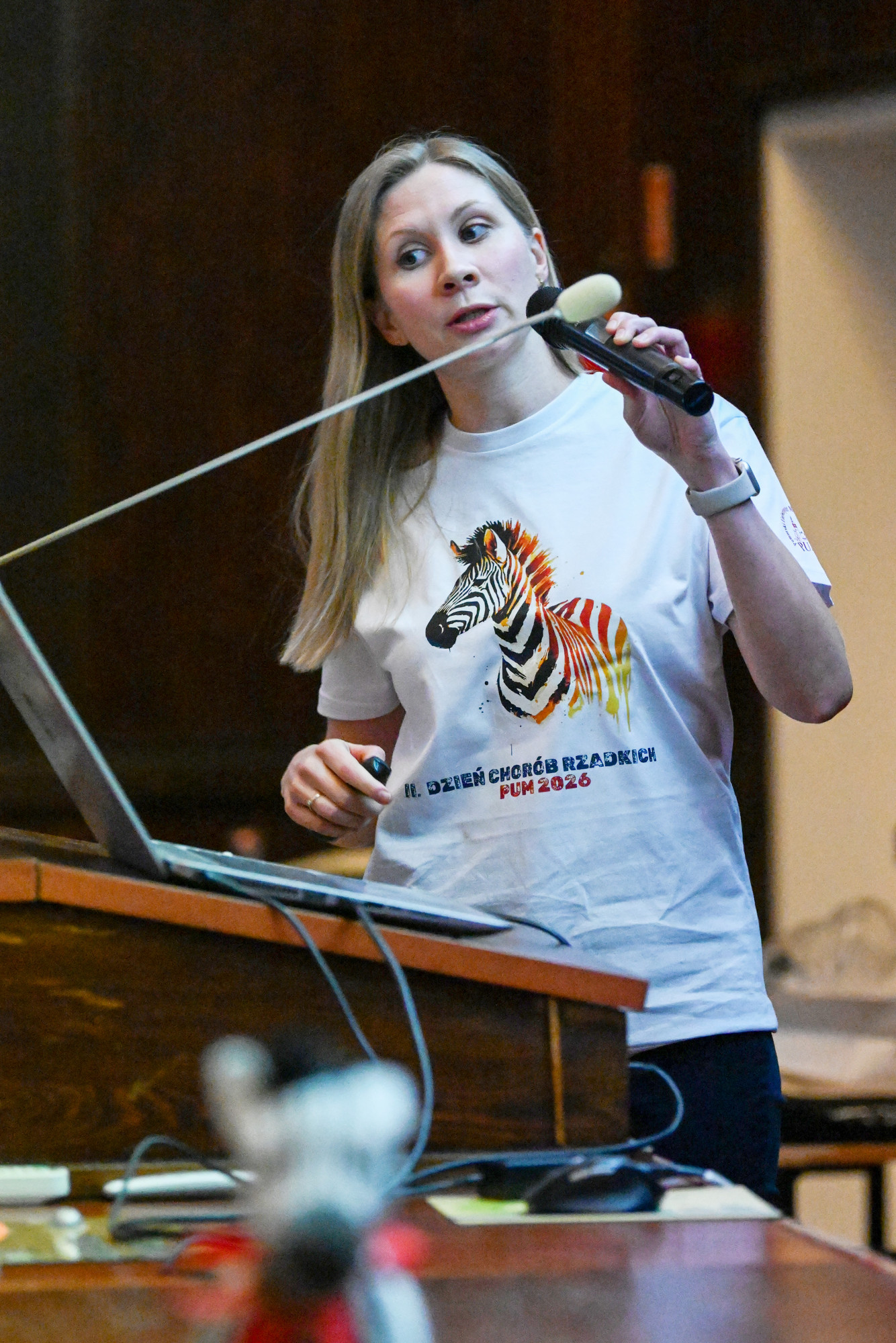 O kilku „małych zebrach” będących pod opieką Kliniki Pediatrii, Chorób Rzadkich i Medycyny Metabolicznej PUM opowiedzieli kolejni prelegenci. Doktor Alicja Leśniak przedstawiła spektakularne efekty leczenia choroby Segawy, czyli bardzo rzadkiego defektu neurotransmisji u małego Marcela, doktor Iwona Ostrowska opowiedziała o terapii lekowej w achondroplazji, dr Michał Patalan zaprezentował przełom w leczeniu krzywicy hipofosfatemicznej u małego Dominika, student 6. roku kierunku lekarskiego PUM Ignacy Frulenko podzielił się wynikami 15 miesięcy obserwacji Ksawerego z niezwykłym zespołem genów przyległych. Zaproszonym wykładowcą była także dr med. Kaja Giżewska-Kacprzak z Oddziału Klinicznego Chirurgii Dziecięcej, Onkologicznej, Urologii i Chirurgii Ręki PUM, która przedstawiła ciekawe spojrzenie na chirurgię dziecięcą, jako chirurgię chorób rzadkich.