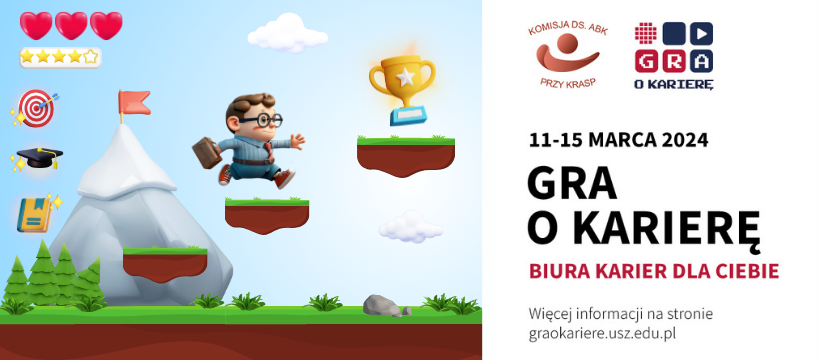 W dniach 10-15 marca 2024 Biura Karier w całej Polsce organizują warsztaty, szkolenia, konferencje i inne wydarzenia pod wspólnym szyldem "Gra o karierę - Biuro Karier dla Ciebie".