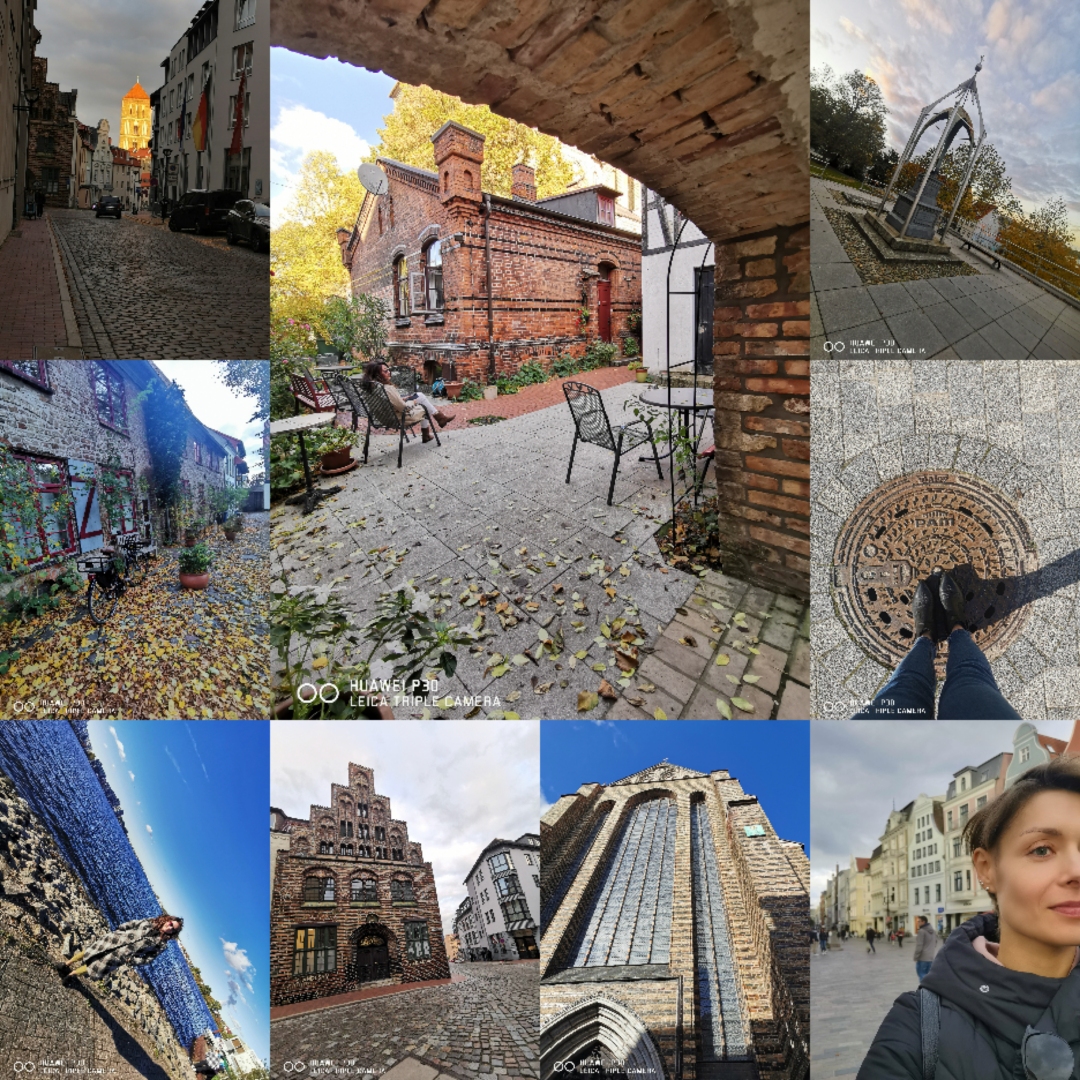 Oczywiście nie samą pracą człowiek żyje, więc po zajęciach na Uniwersytecie oddawałyśmy się zwiedzaniu miasta. Rostock jest przepiękny i ma wiele do zaoferowania zwiedzającym! Jest tu cudowna dzielnica Alte Stadt, gdzie można było godzinami spacerować po starych, wybrukowanych uliczkach, a każda kamienica, czy budynek budziły podziw. Mimo, iż nasz wyjazd przypadł na okres jesienny, pogoda sprzyjała spacerom i zwiedzaniu, a słońce cudownie oświetlało urokliwe zakamarki uliczek, przepiękne witryny sklepowe, czy oryginalne drzwi, które zdobiły wejście do niemal każdego budynku.