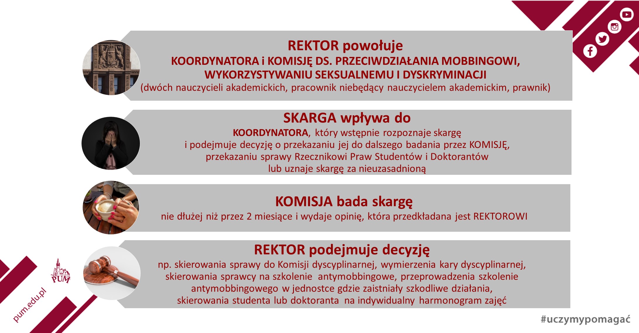 Wnioski prosimy kierować do koordynatora ds. mobbingu na adres e-mail: agnieszka.turon.skrzypinska@pum.edu.pl