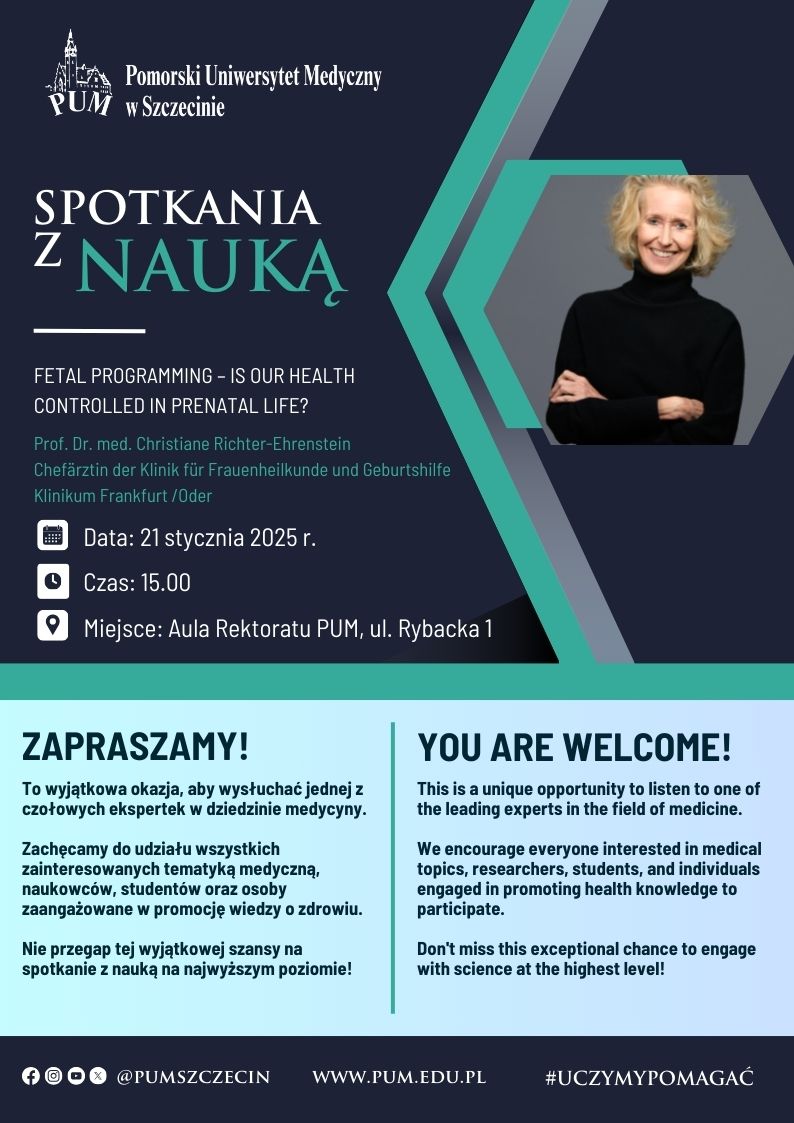 The Pomeranian Medical University in Szczecin invites you to the next Meeting with Science, which will take place on April 29 at 3:00 p.m. in the PUM Rector's Hall. As part of an open lecture devoted to advanced analytical and statistical methods in metabolism research, we will have the honor of listening to a lecture by an outstanding specialist in the field of metabolomics - Dr. Jennifer Kirwan from the Berlin Institute of Health at Charité - Universitätsmedizin Berlin (Germany).
