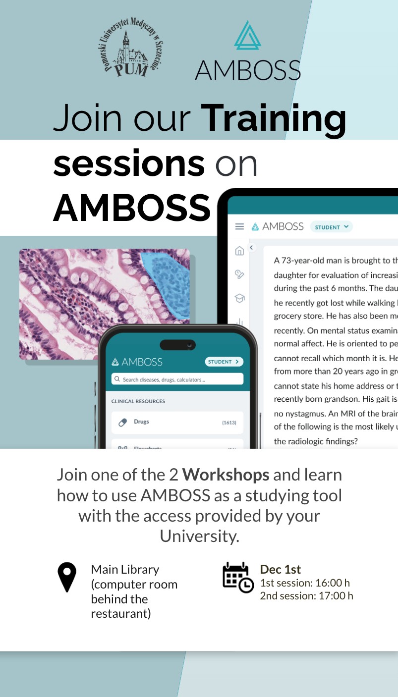 Please be informed that on 1 December 2025, a representative from the AMBOSS company will visit Szczecin and deliver a short training session.