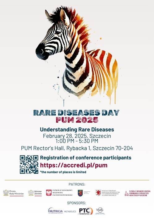 On behalf of Professor Leszek Domański, MD, PhD, Rector of PUM, and Professor Maria Giżewska, MD, PhD, from the Department of Paediatrics, Endocrinology, Diabetology, Metabolic Diseases and Developmental Cardiology at PUM, we warmly invite you to join us on 28 February 2025 in celebrating Rare Disease Day.