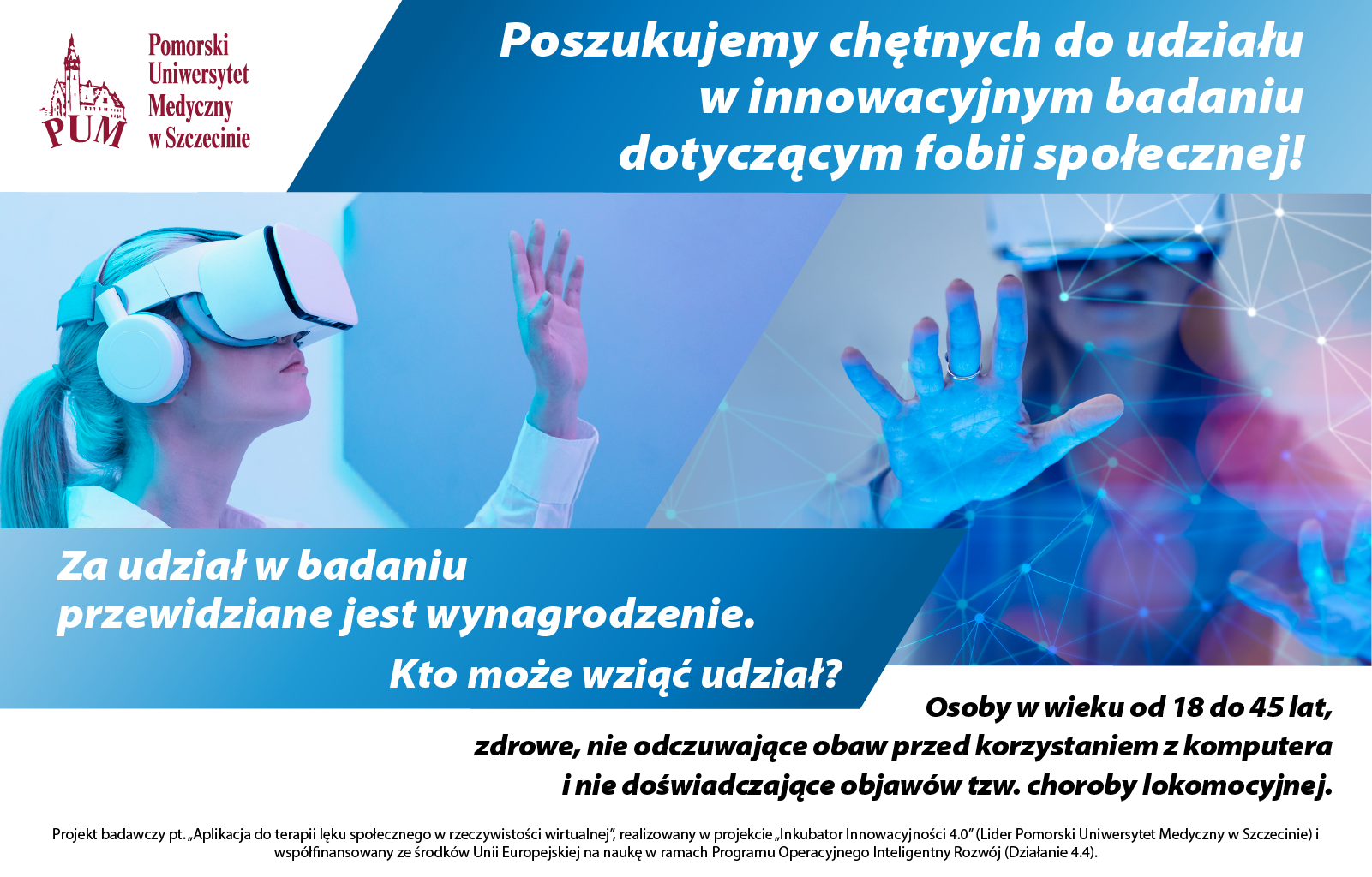 - Do udziału w badaniu poszukujemy osób w wieku od 18 do 45 lat, mieszkających na terenie Szczecina i okolic, które odczuwają objawy lęku społecznego, ale także osoby, które takich objawów nie mają.
