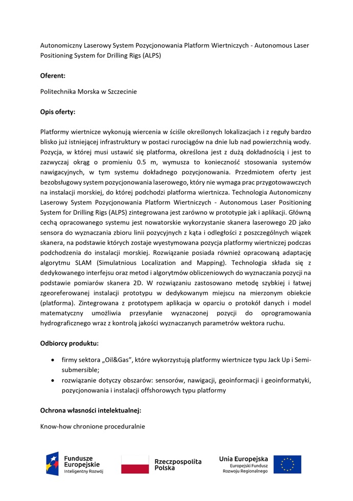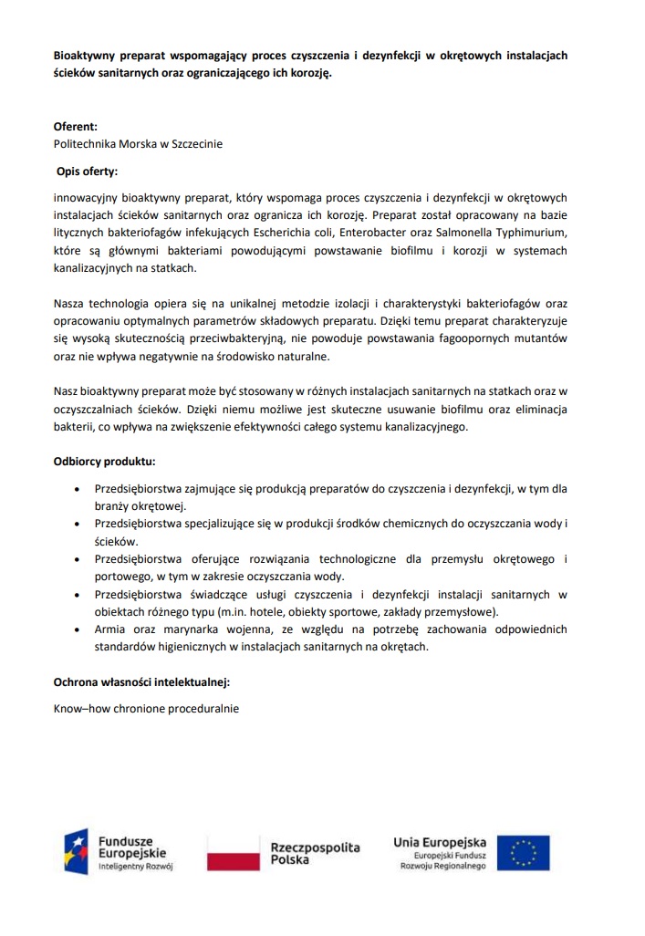 Pozostałe oferty technologiczne powstałe w ramach Konsorcjum MareMed