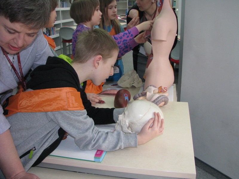 Szczególnym zainteresowaniem w czytelni cieszyły się modele anatomiczne : czaszki, szkielety i tors, wszystkie z ruchomymi elementami.