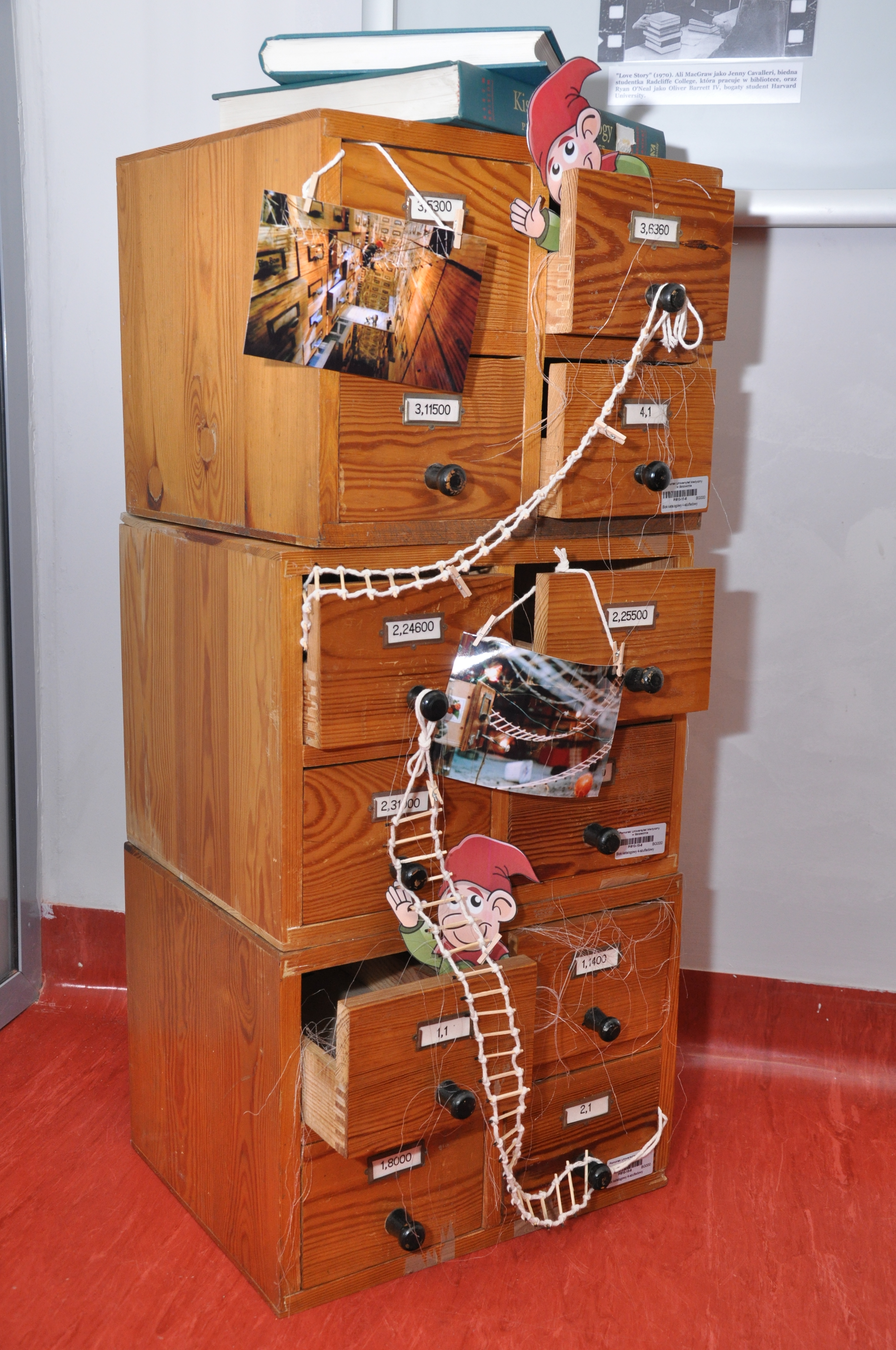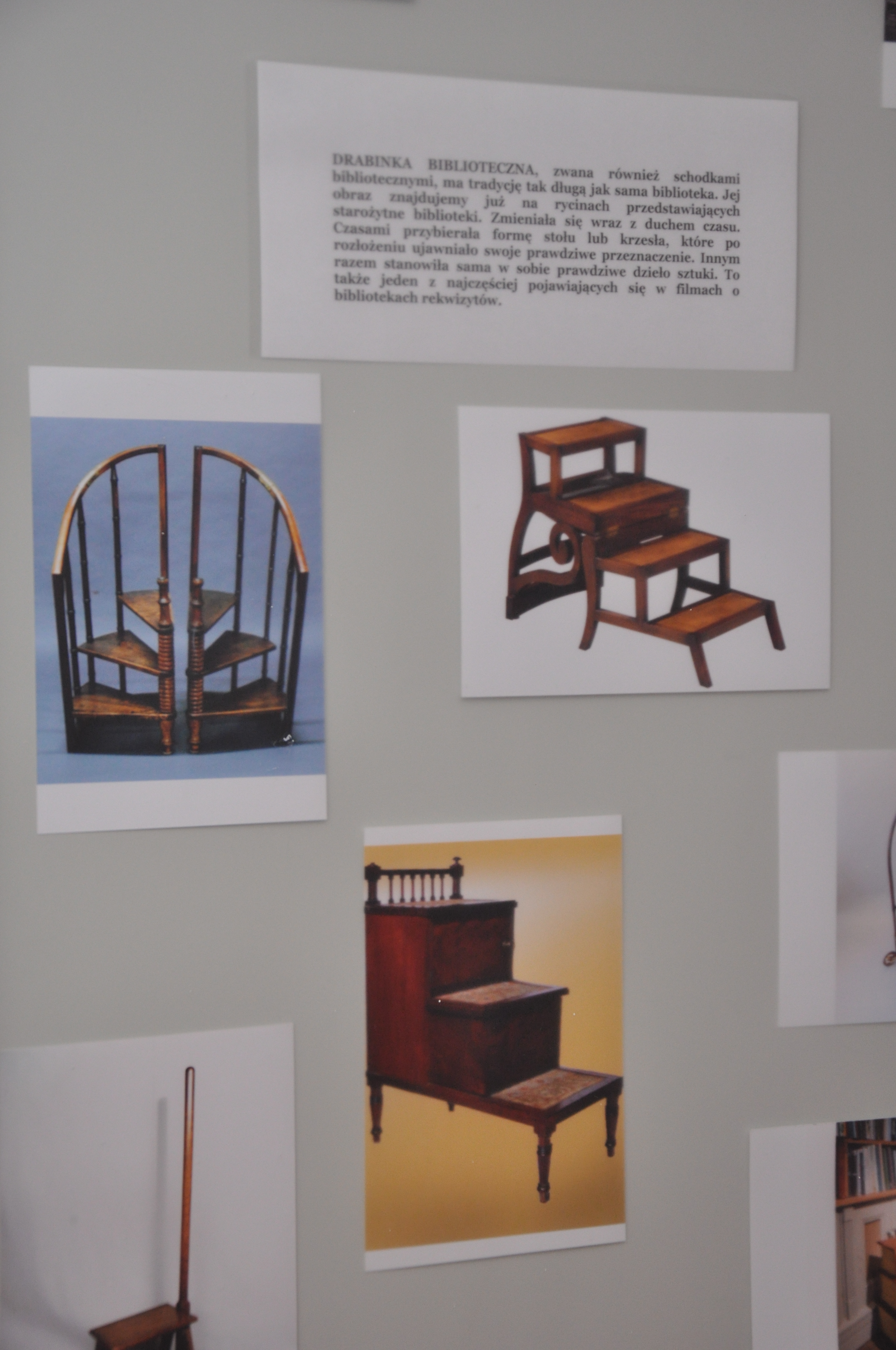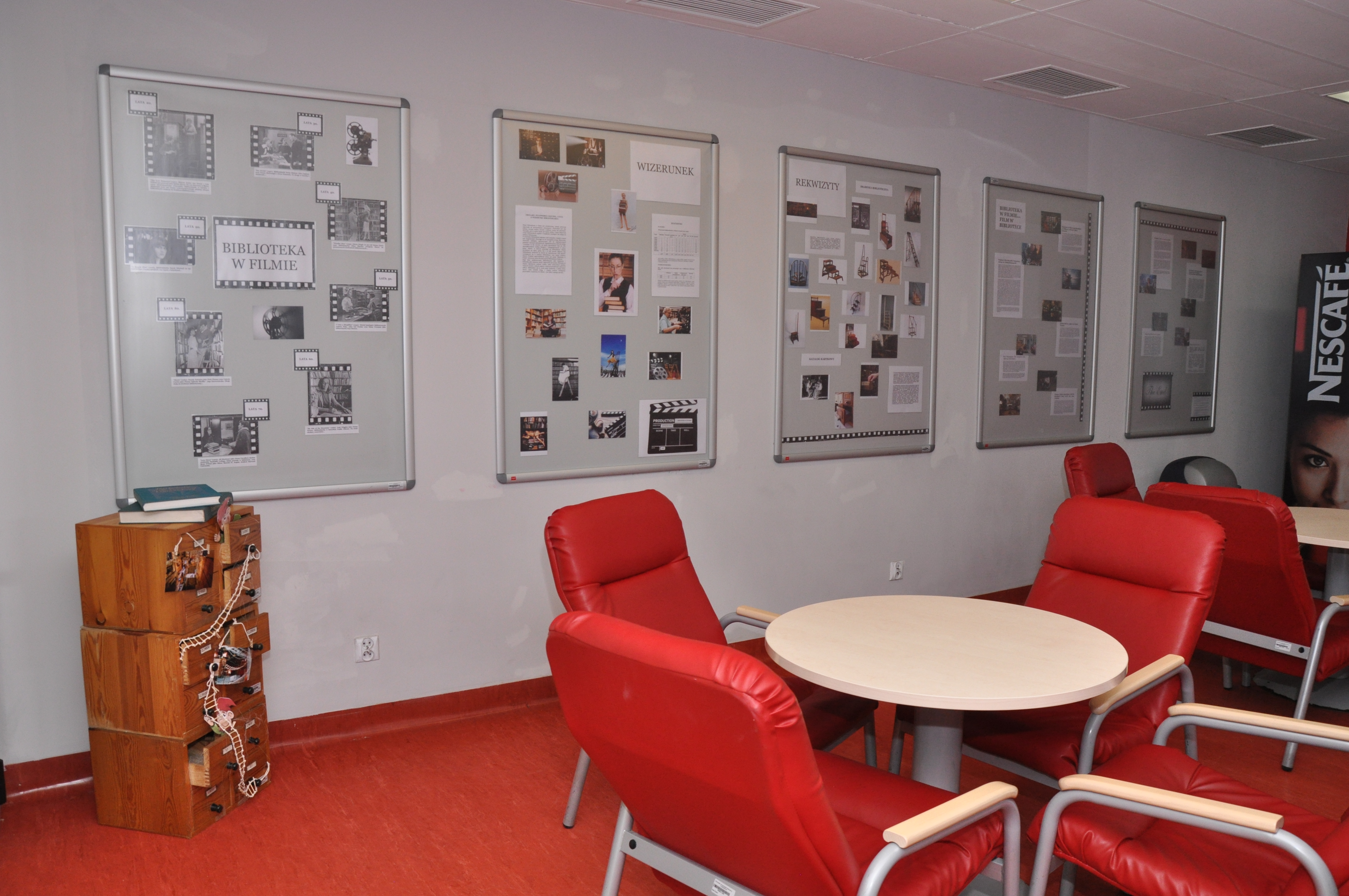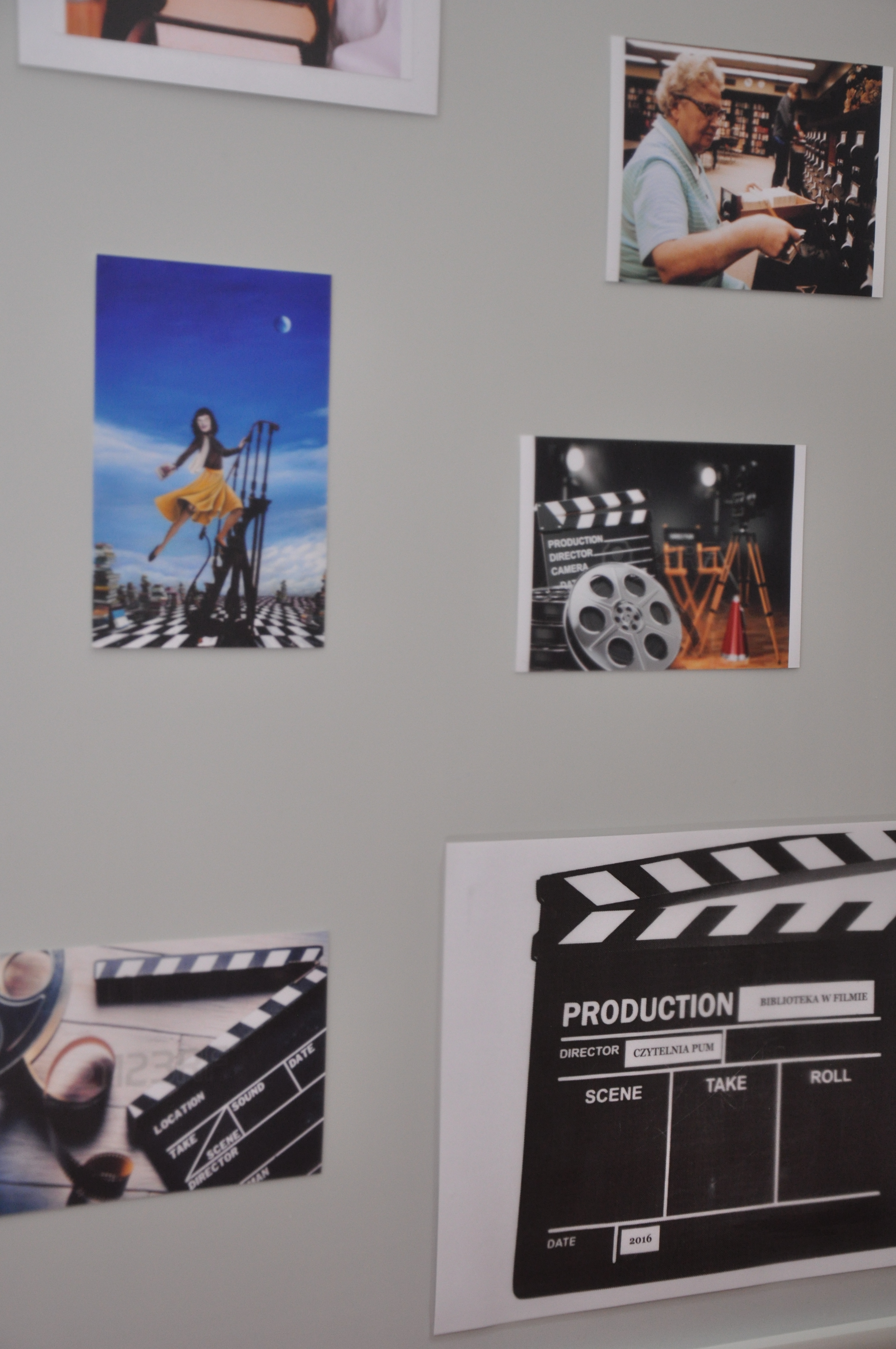 Inspiracją do powstania wystawy „Biblioteka w filmie” stała się książka Ray’a i Brendy Tevis „The image of Librarians in cinema, 1917 – 1999”. Autorki wystawy: Ewa Jarmołowicz, Izabela Górczyńska, Renata Pabisiak przedstawiły nie tylko wizerunek bibliotekarza w filmie, ale również najczęściej towarzyszące mu rekwizyty (drabinka biblioteczna, katalog) oraz skonfrontowały obraz kreowany w filmach z rzeczywistością (stereotypy kontra bibliotekarze PUM). Odwiedzający wystawę mogą również przeczytać o filmach, których akcja toczy się w bibliotece, jak również prześledzić zmiany jakie następowały w postrzeganiu naszego zawodu na przestrzeni lat.