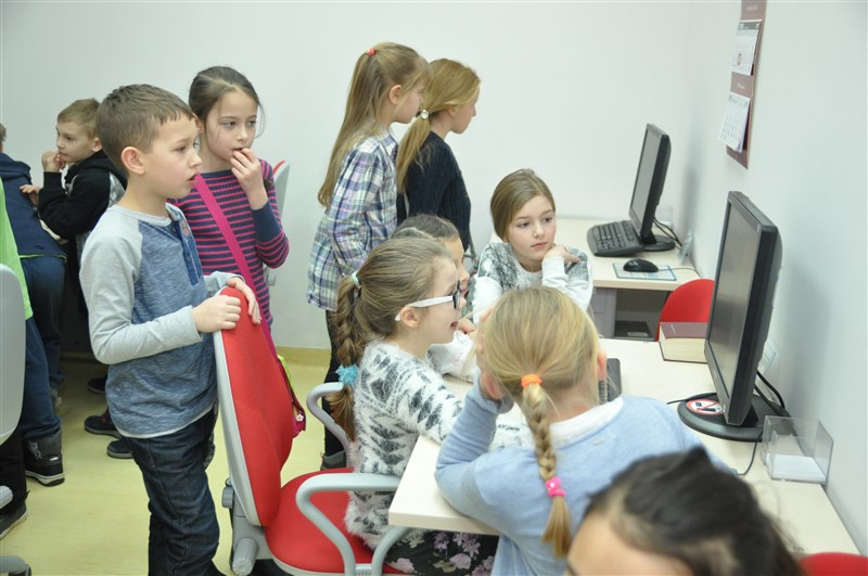 18 stycznia 2017 r. Bibliotekę Główną PUM odwiedzili uczniowie Szkoły Podstawowej nr 74. Dzieci zobaczyły wszystkie agendy biblioteki służące czytelnikom tj: czytelnię, wypożyczalnię, dział informacji a następnie magazyn, w którym znajduje się archiwum biblioteki. Młodzi ludzie zapoznali się z zasadami funkcjonowania poszczególnych działów, obejrzeli nowoczesne urządzenia biblioteczne oraz pomoce naukowe, skorzystali z internetowej bazy danych w pracowni komputerowej.