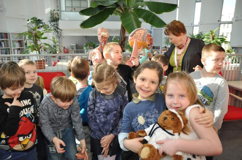17 marca 2015 Bibliotekę Główną PUM odwiedzili początkujący naukowcy ze Szkoły Podstawowej nr 55 „Błękitna” na Pomorzanach. Dzieci obejrzały czytelnię, gdzie z ogromnym zainteresowaniem „studiowały” anatomię człowieka korzystając z najnowszych pomocy naukowych dostępnych od niedawna w bibliotece. Poza tym wycieczka zeszła do niedostępnych dla ogółu magazynów. Dzieci z radością uruchamiały mobilne regały – wyposażenie nowoczesnych bibliotek. Wizytę zakończyło wręczenie każdemu uczestnikowi pamiątkowego dyplomu. Wizytę uczniów uwieczniła Anna Cymbor.