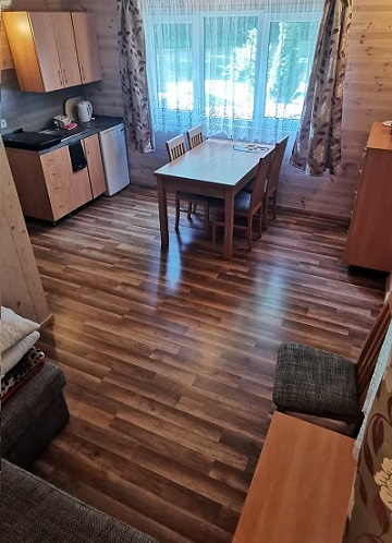 Salon z aneksem kuchennym w domku |