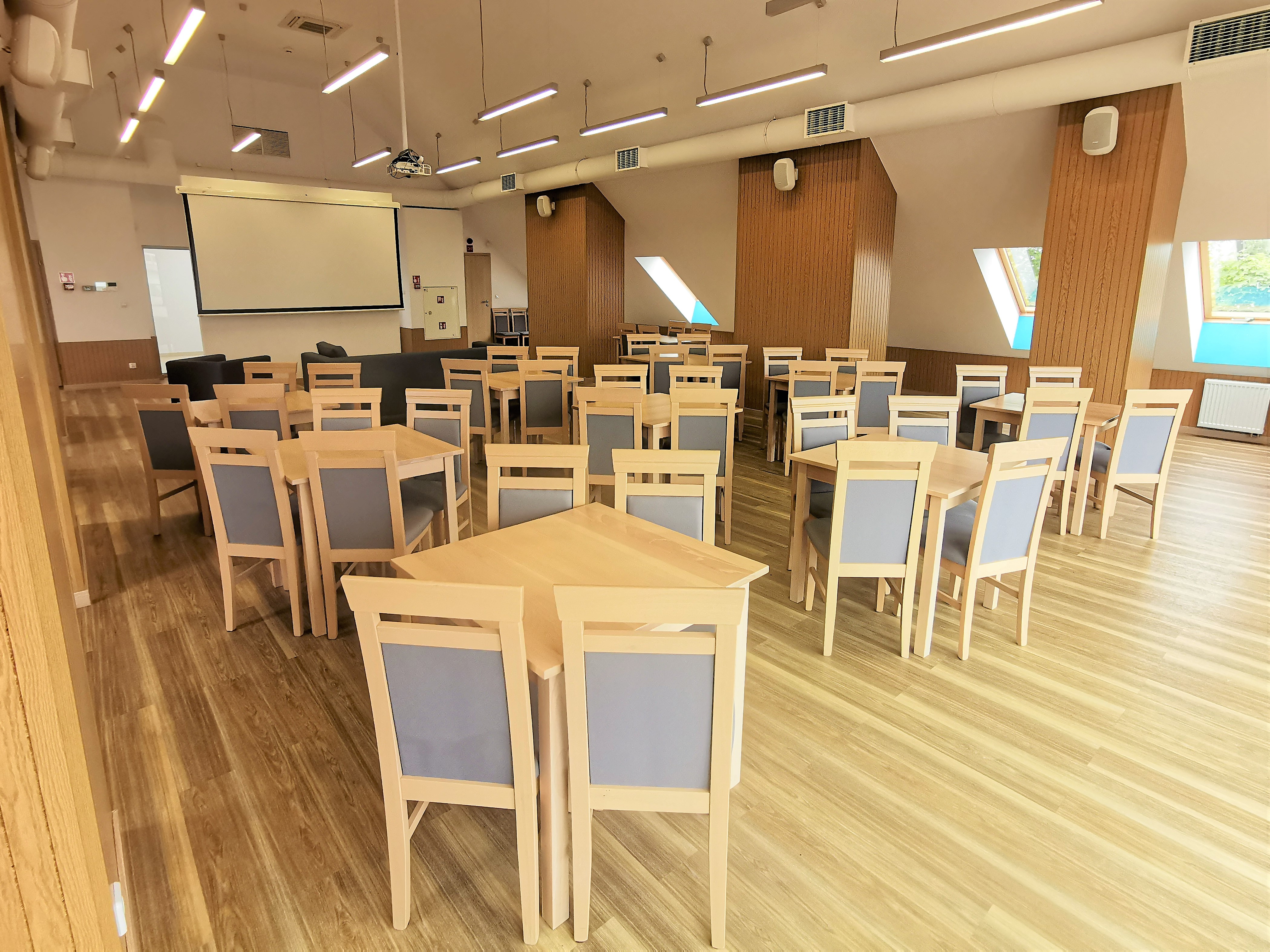 Na poddaszu budynku jest klimatyzowana świetlica na 50 osób, wyposażona w profesjonalne nagłośnienie, projektor i ekran, która może być wykorzystywana również jako sala konferencyjna. Na tej samej kondygnacji znajduje się kolejna atrakcja ośrodka, tj. sala fitness, gdzie mieszkańcy mogą poprawić swoją formę fizyczną korzystając z dostępnych tam m.in. 2 bieżni, wielofunkcyjnego atlasu, orbitreków, czy stacjonarnych rowerów. Sala ta również jest klimatyzowana.