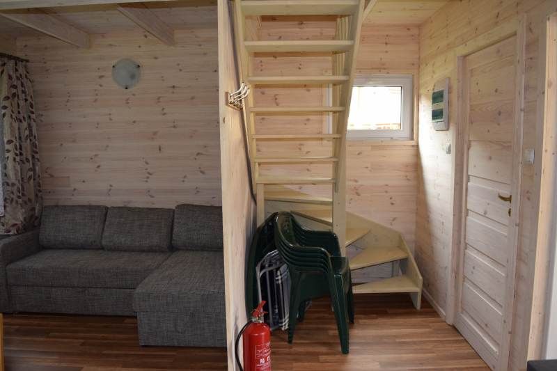 Salon domku, schody na piętro |